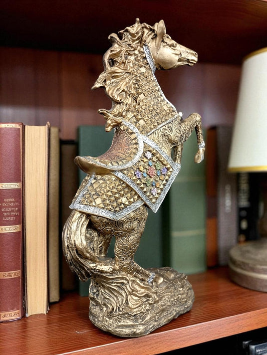 Caballo Decorativo Dorado | Escultura de Caballo en Resina para Decoración Elegante