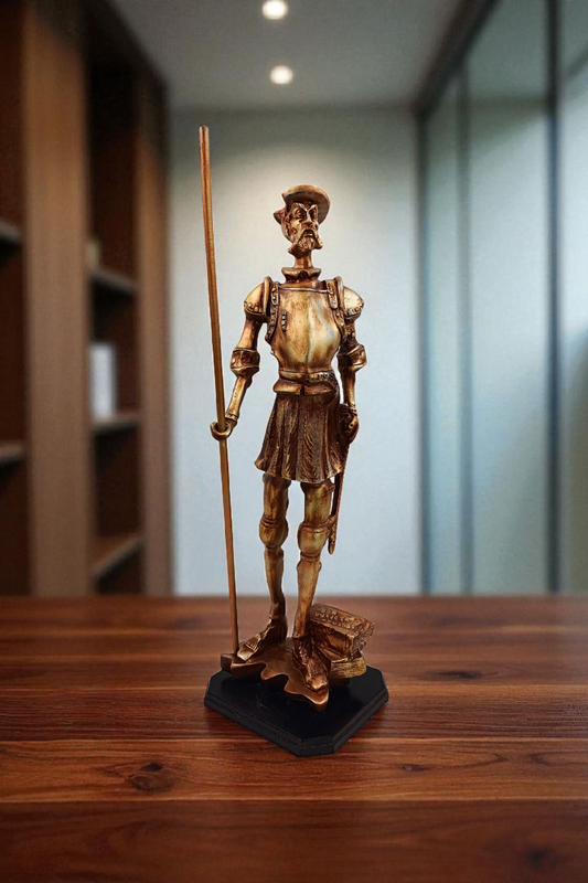 Figura Don Quijote de la Mancha – Estatua en Resina con Base de Madera Natural