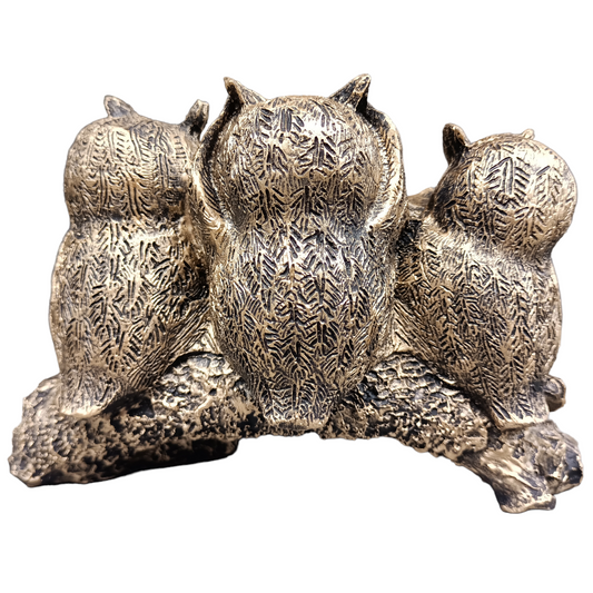 Decoración de Tres Búhos Sabios Virtudes, Estatua Figuras Decorativa para el Hogar (Dorado)