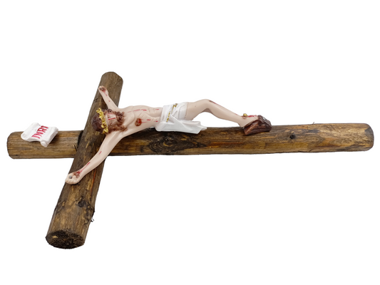 Cristo con tronco cruz religión 50 cm