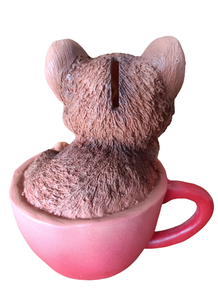Esta figura cuenta con una ranura para guardar tus ahorros. Por su tamaño vy sencillez es una pieza muy discreta qué puedes utilizar como adorno en cualquier parte de tu casa.