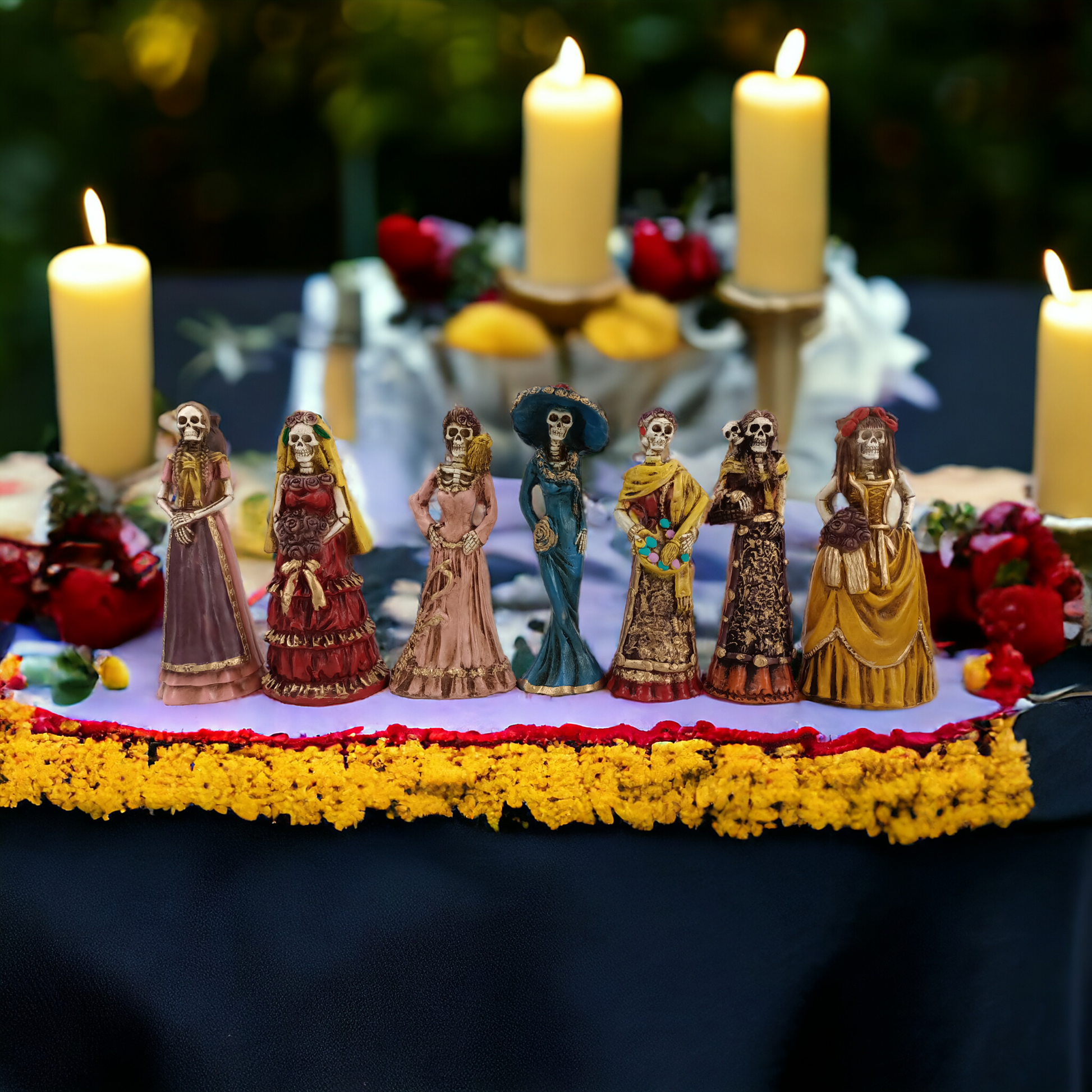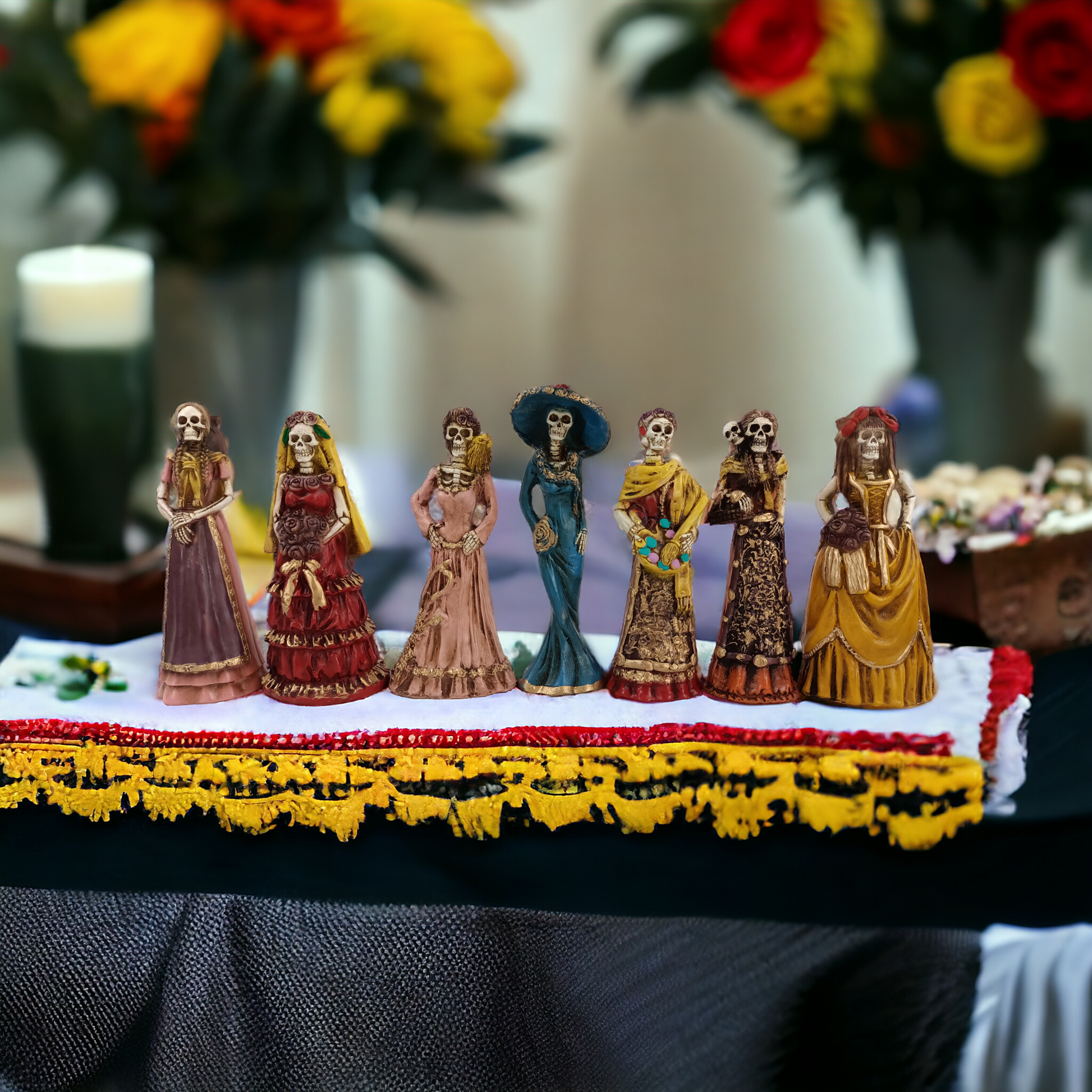 Preciosas catrinas artesanales mexicanas en hueso molido con resina y polvo de alabastro.