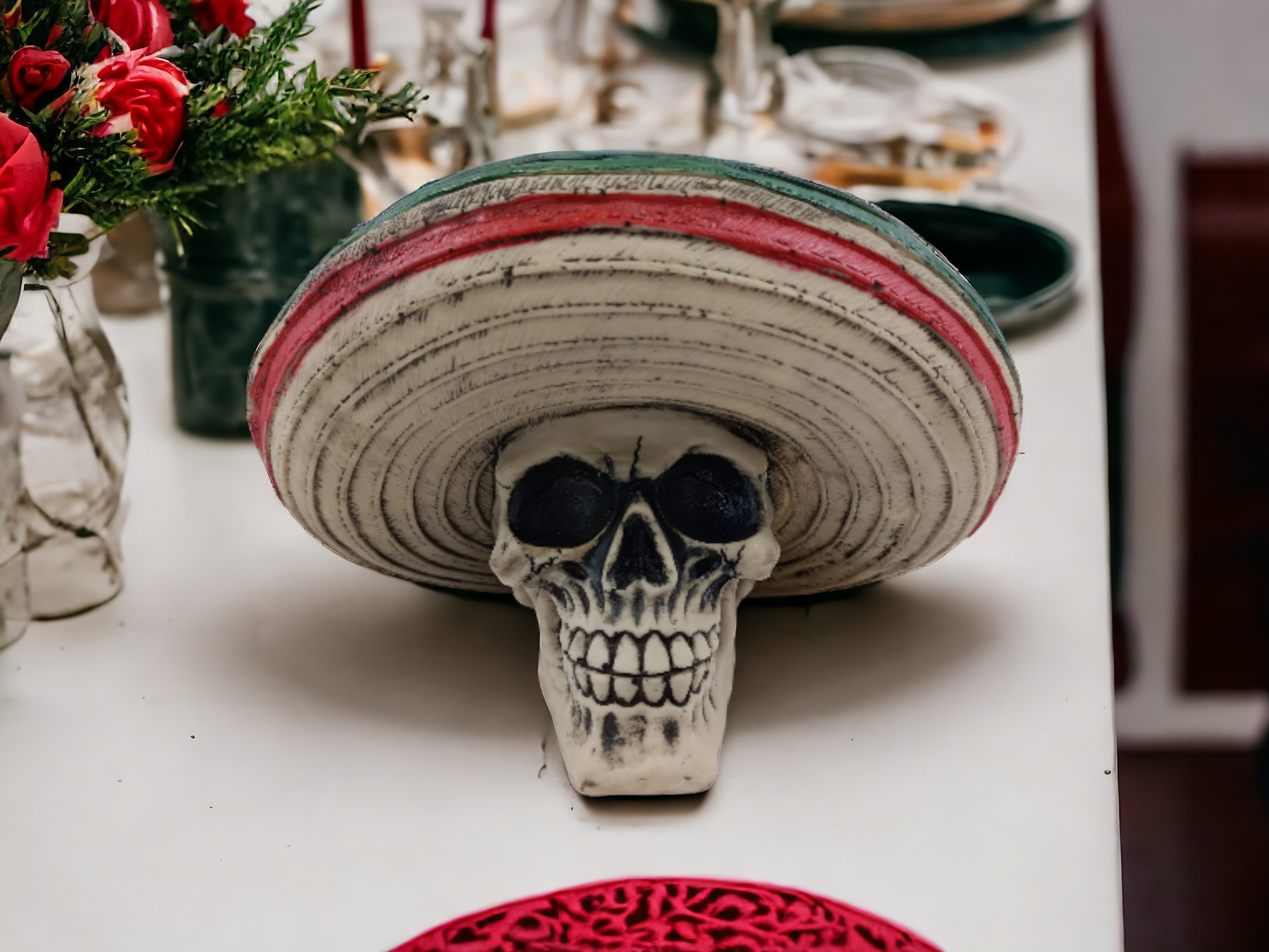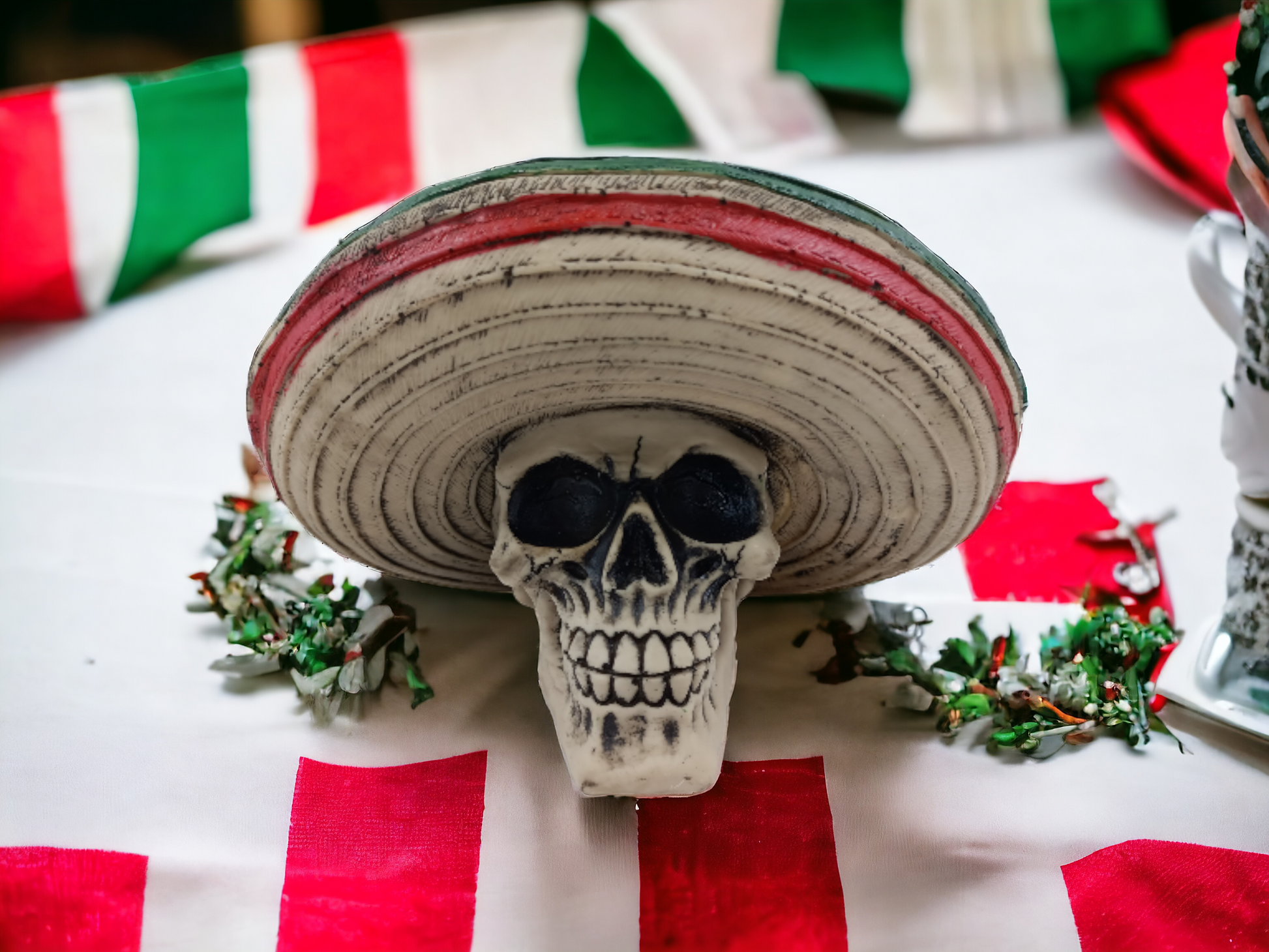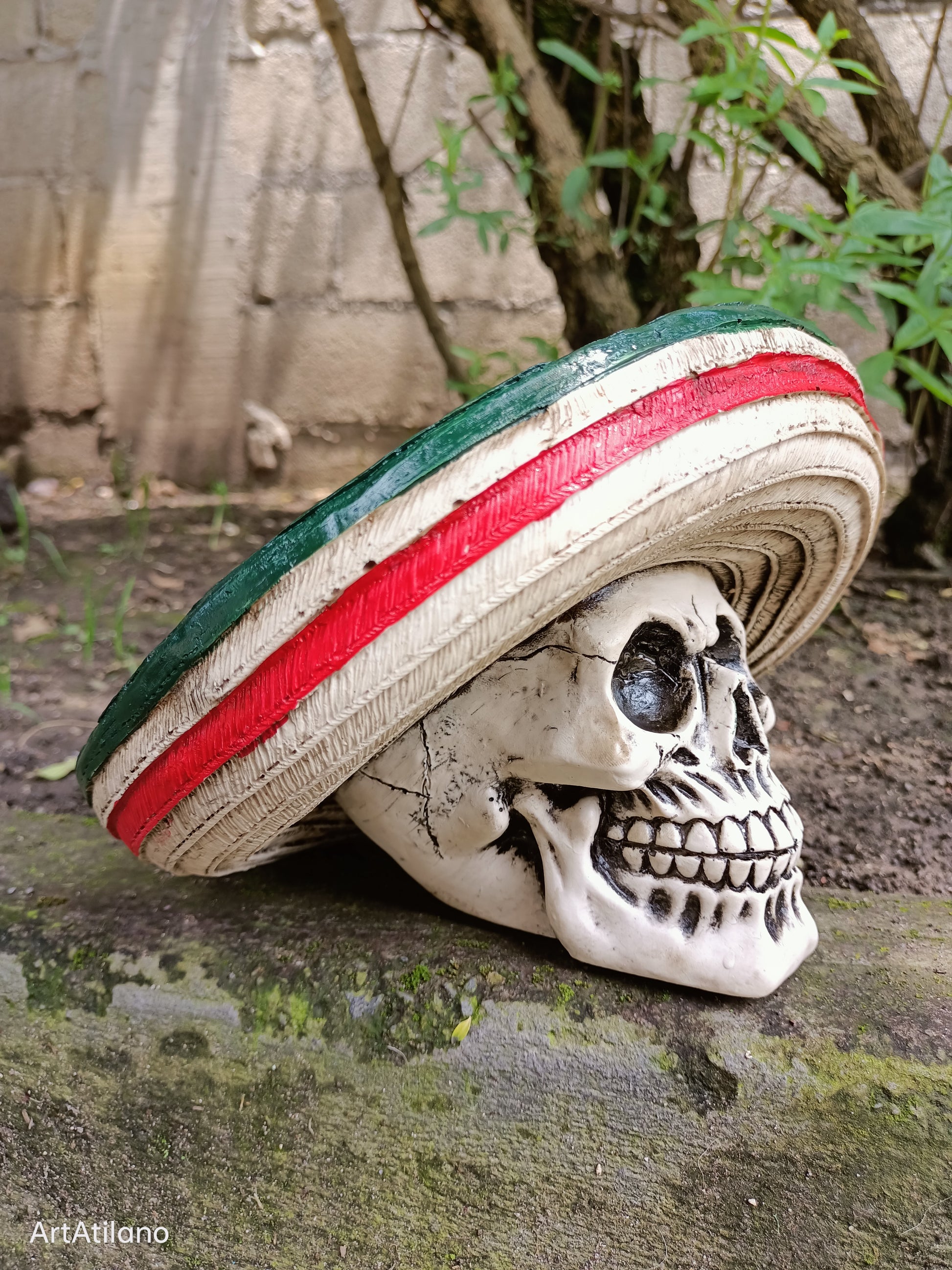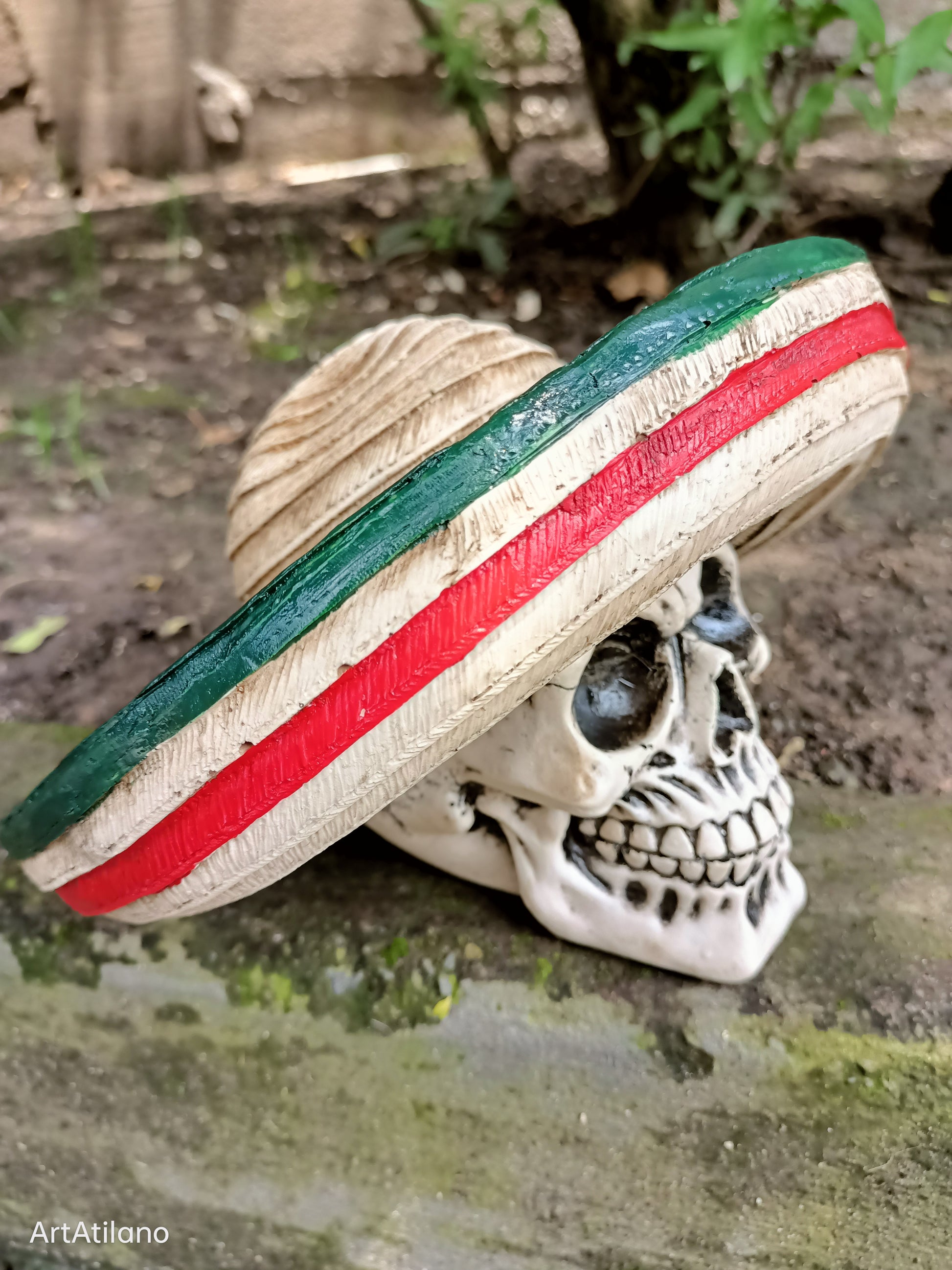 Cráneo Catrín Figura Decorativa Charro Resina México Mexicano