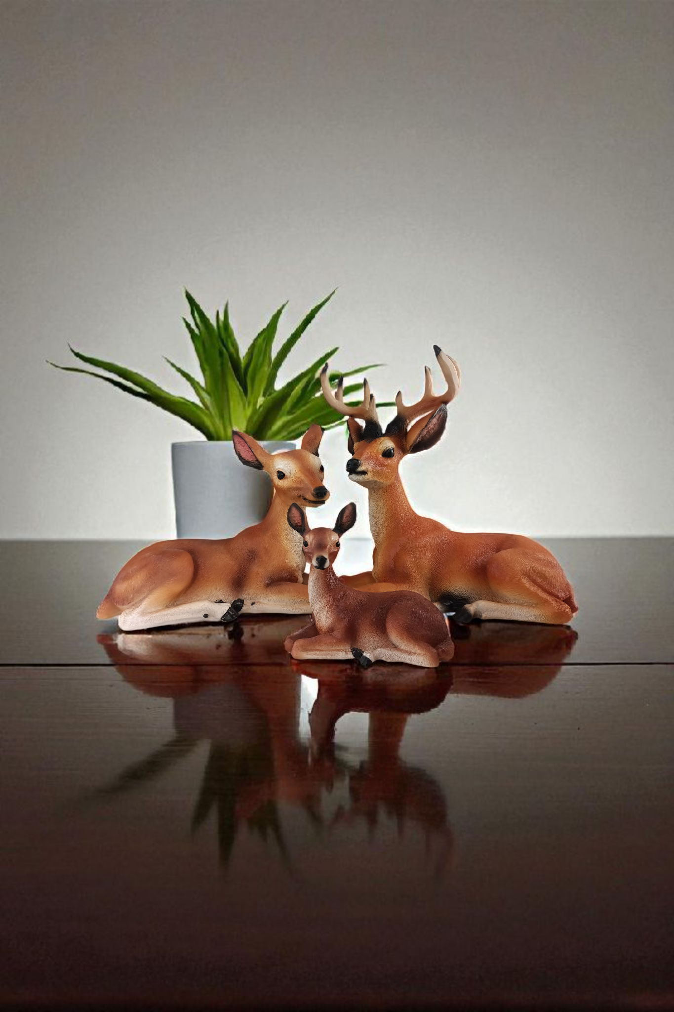 Incluye tres piezas: papá, mamá y el venadito bebé, todos elaborados artesanalmente con acabados realistas que los hacen lucir como verdaderas obras de arte. Su diseño transmite ternura, elegancia y calidez, convirtiéndolos en el centro de atención en cualquier espacio.