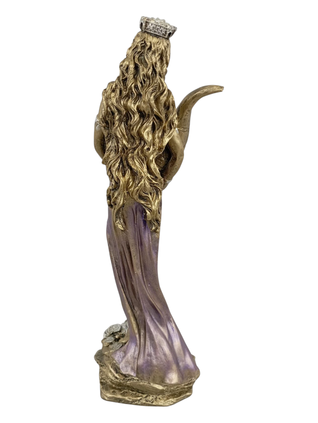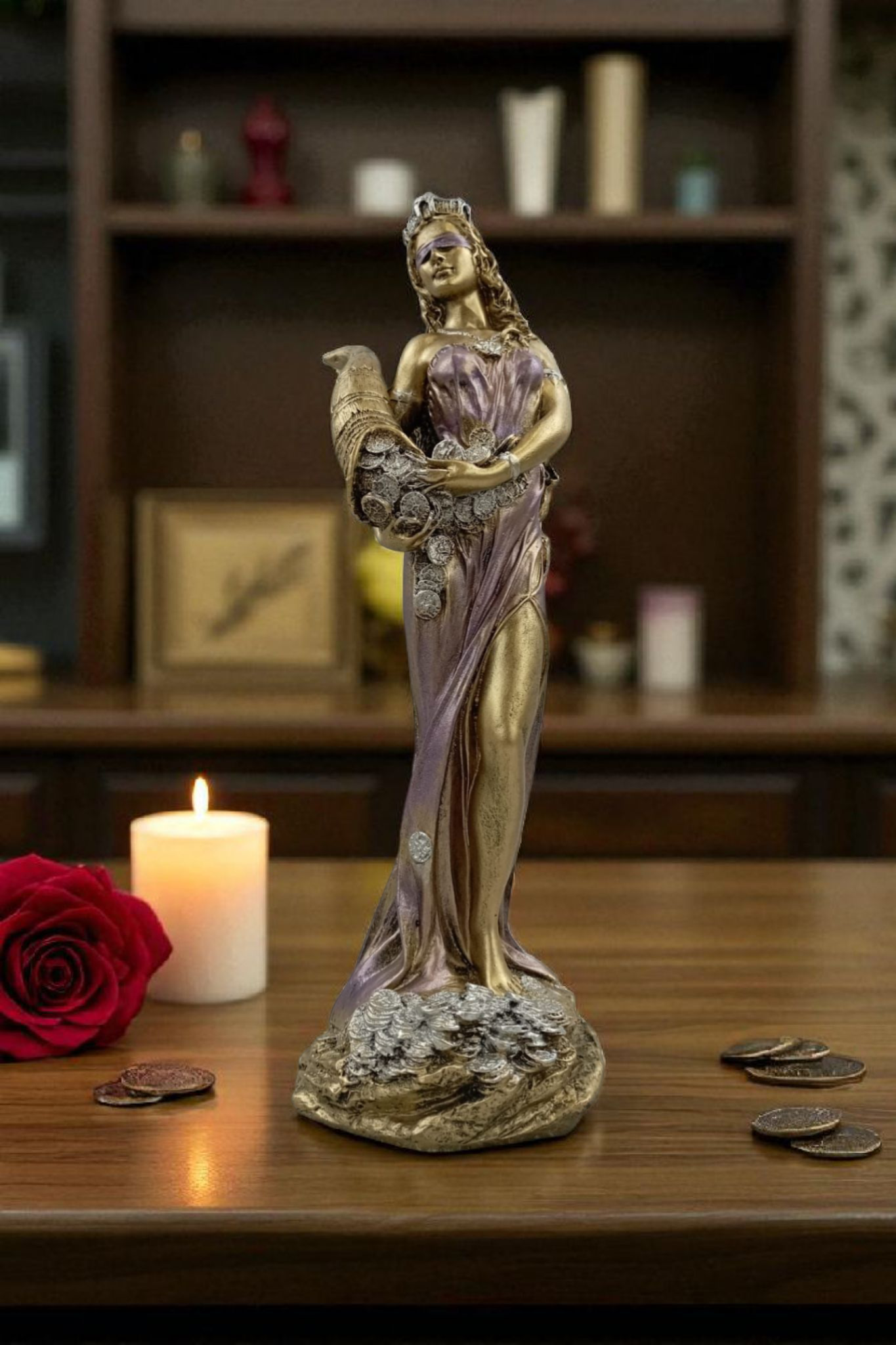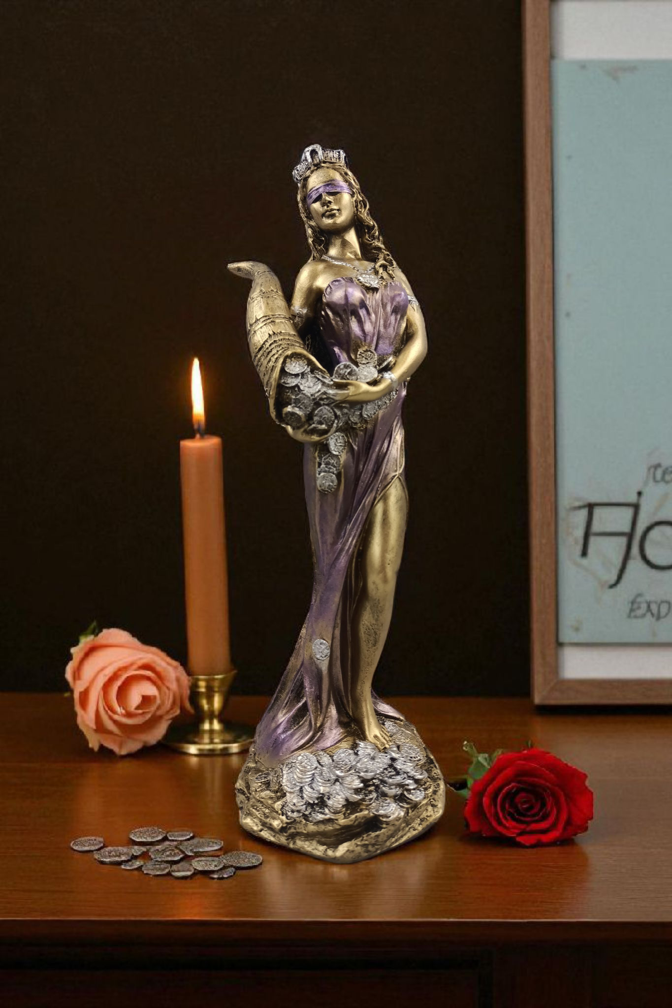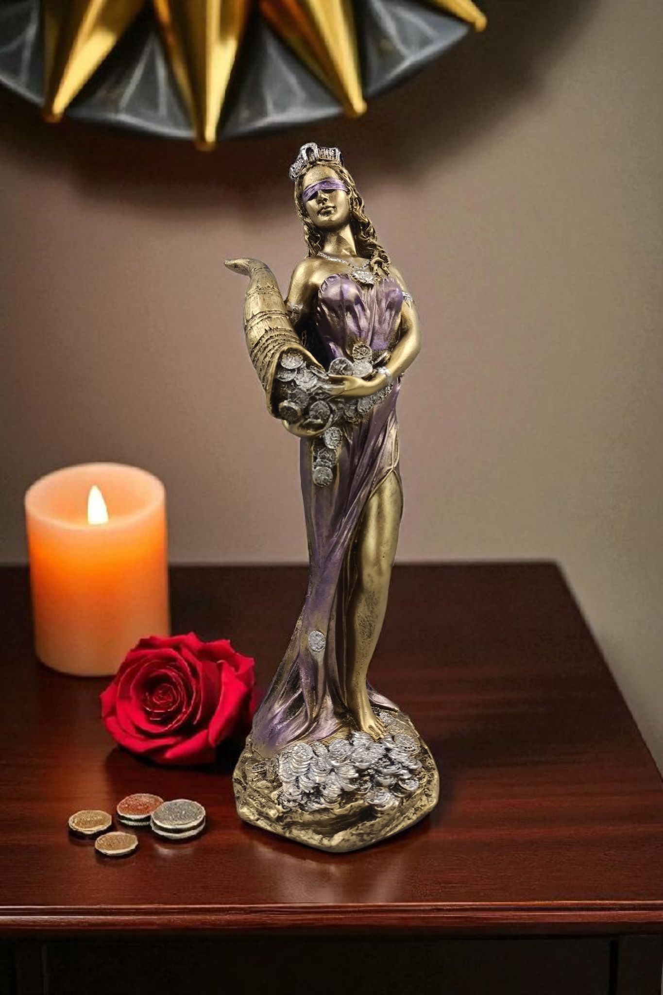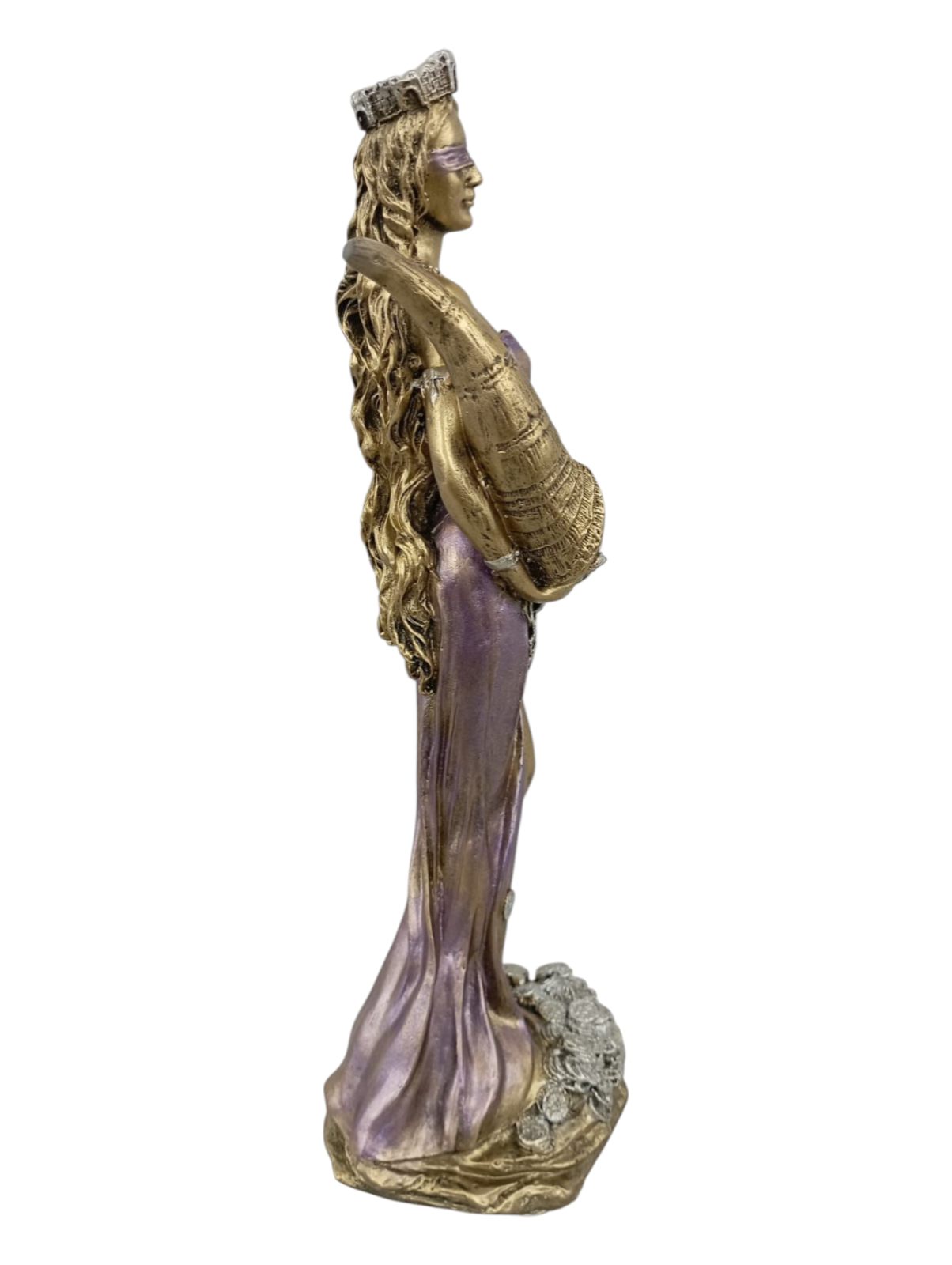 Lleva a tu hogar o negocio la energía de la prosperidad y la buena suerte con esta espectacular figura de Abundia, también conocida como la Diosa Fortuna.