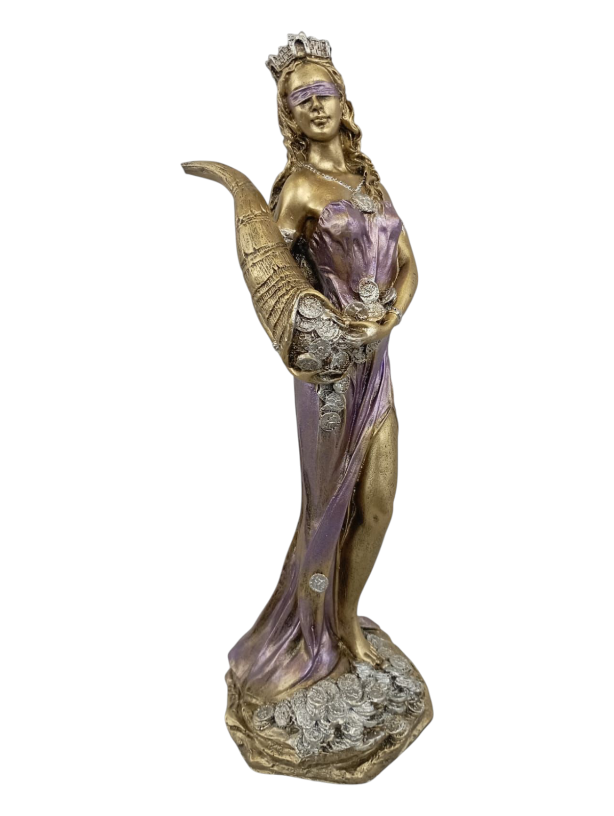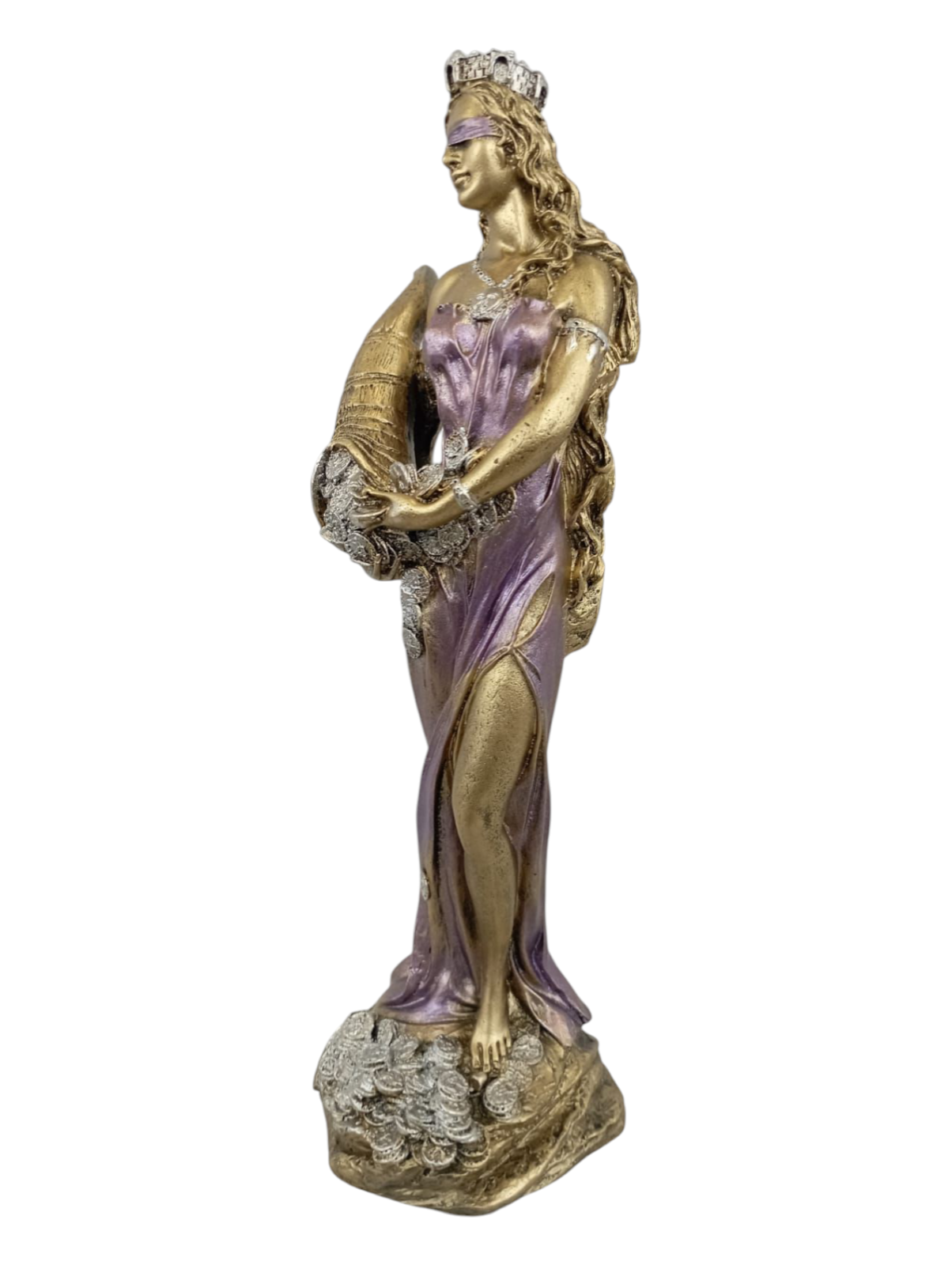 Fortuna, o Tyche en la mitología griega, es la diosa mayor del destino y el azar favorable. Su venda en los ojos simboliza que reparte suerte a todos por igual.