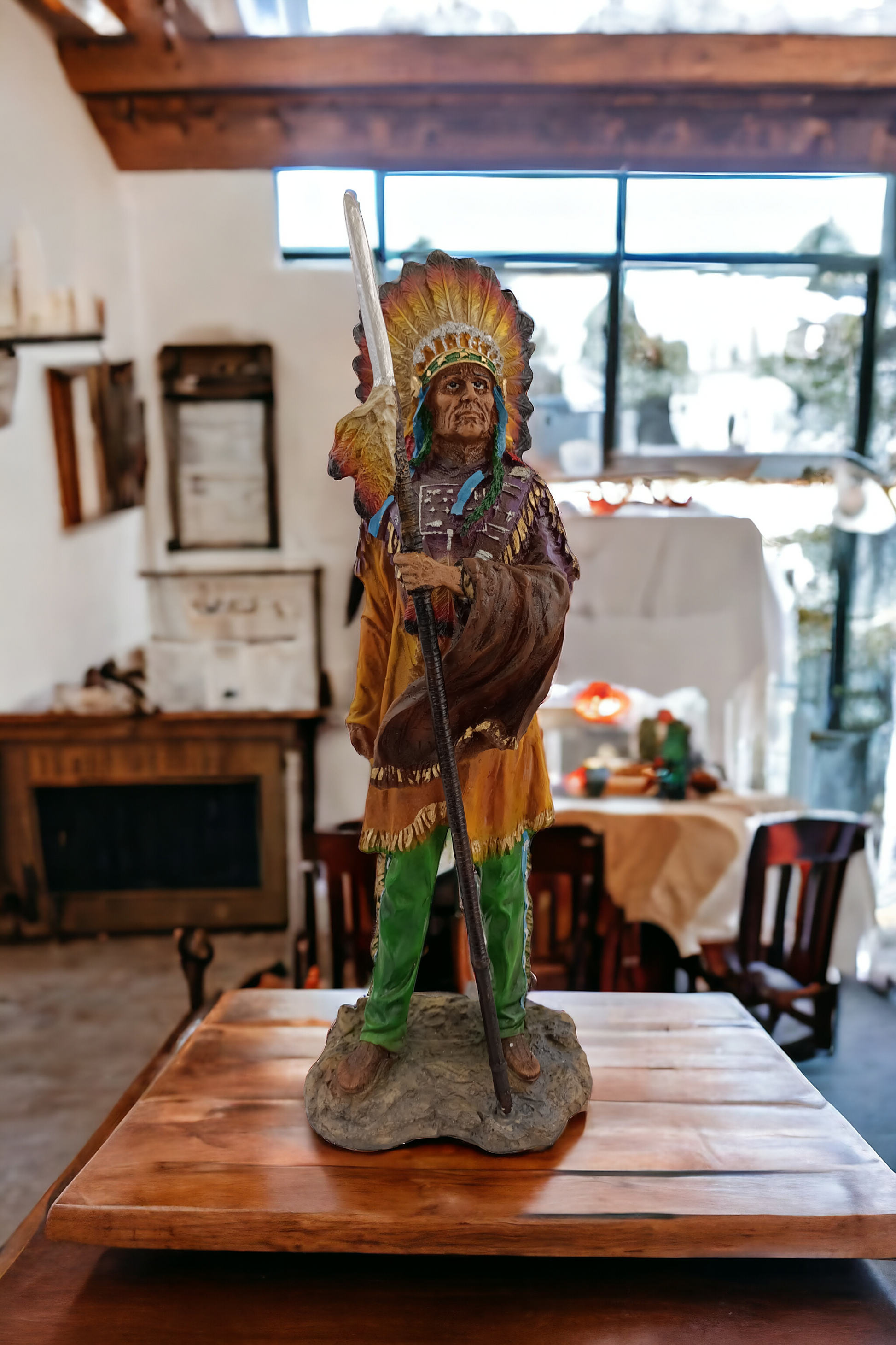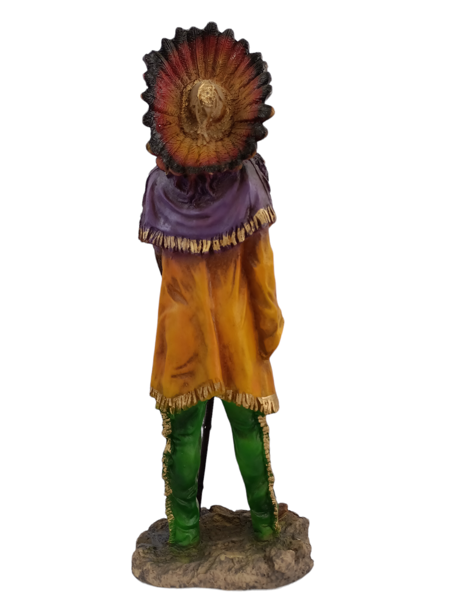 Este guerrero Geronimo decorativo de 50 cm es una representación del orgullo y la fuerza del pueblo nativo americano. Hecho a mano, cada detalle refleja la destreza artística de su cultura. Perfecto para añadir un toque cultural a cualquier espacio y honrar el legado de los valientes guerreros nativos americanos.