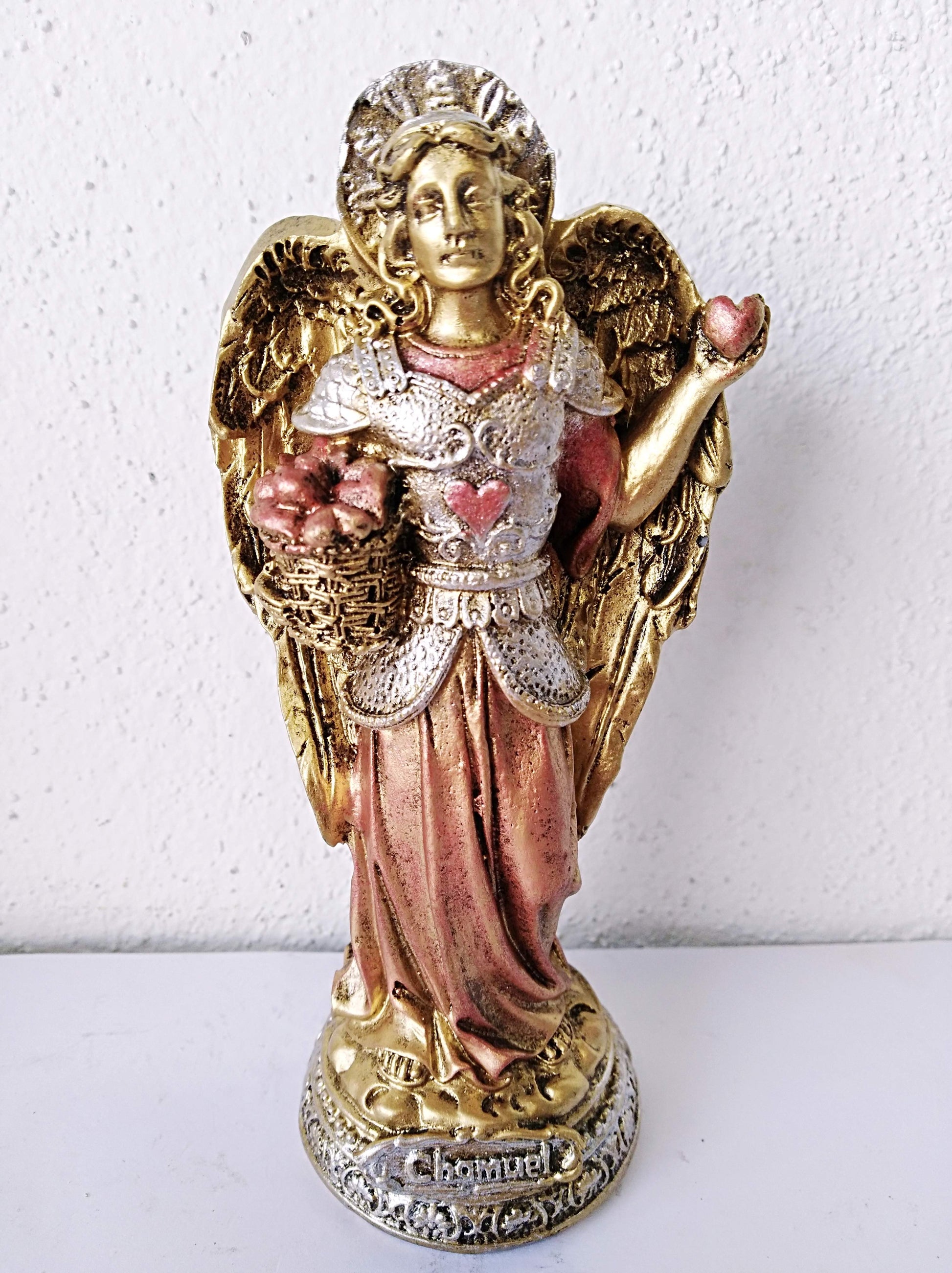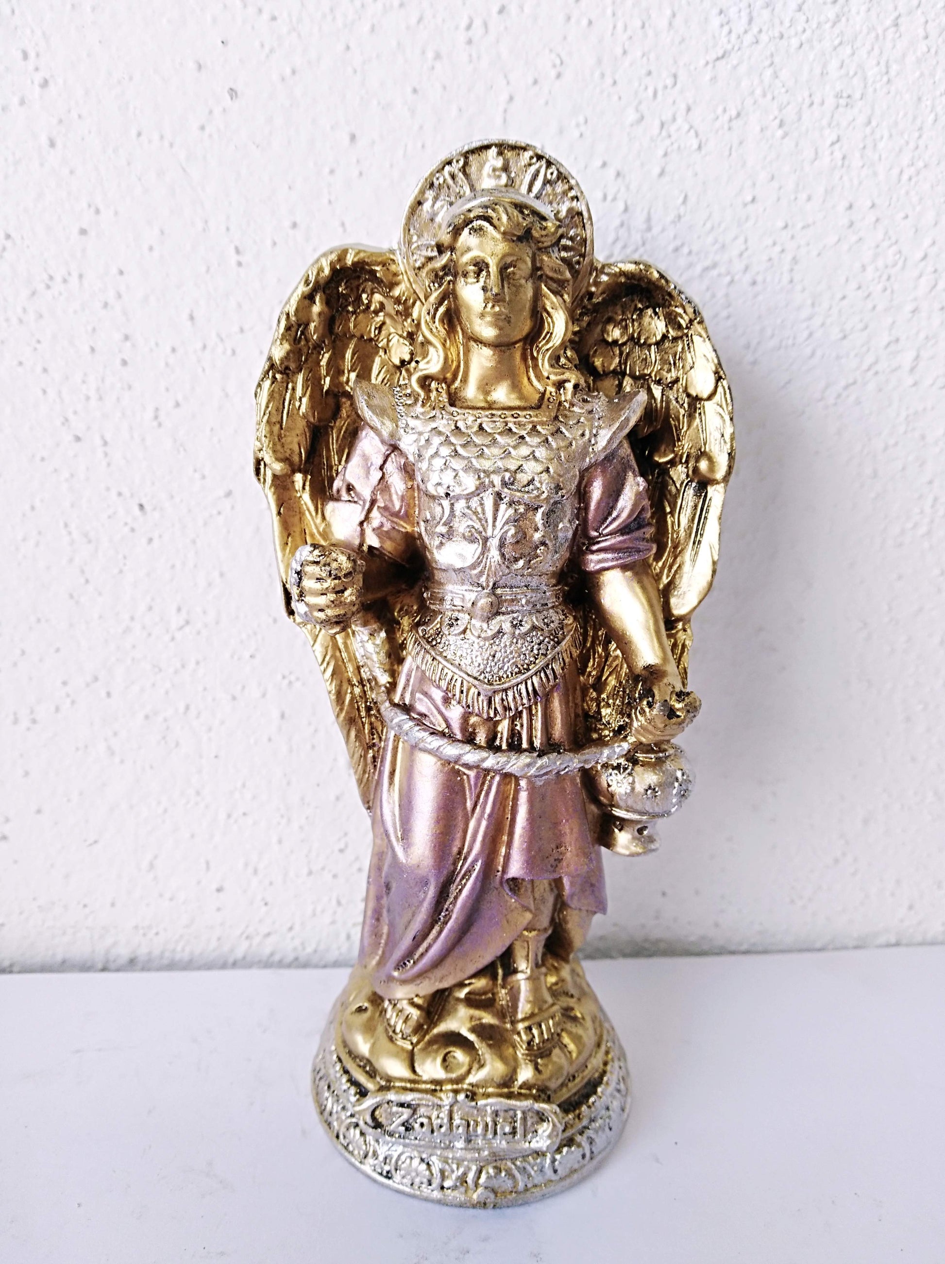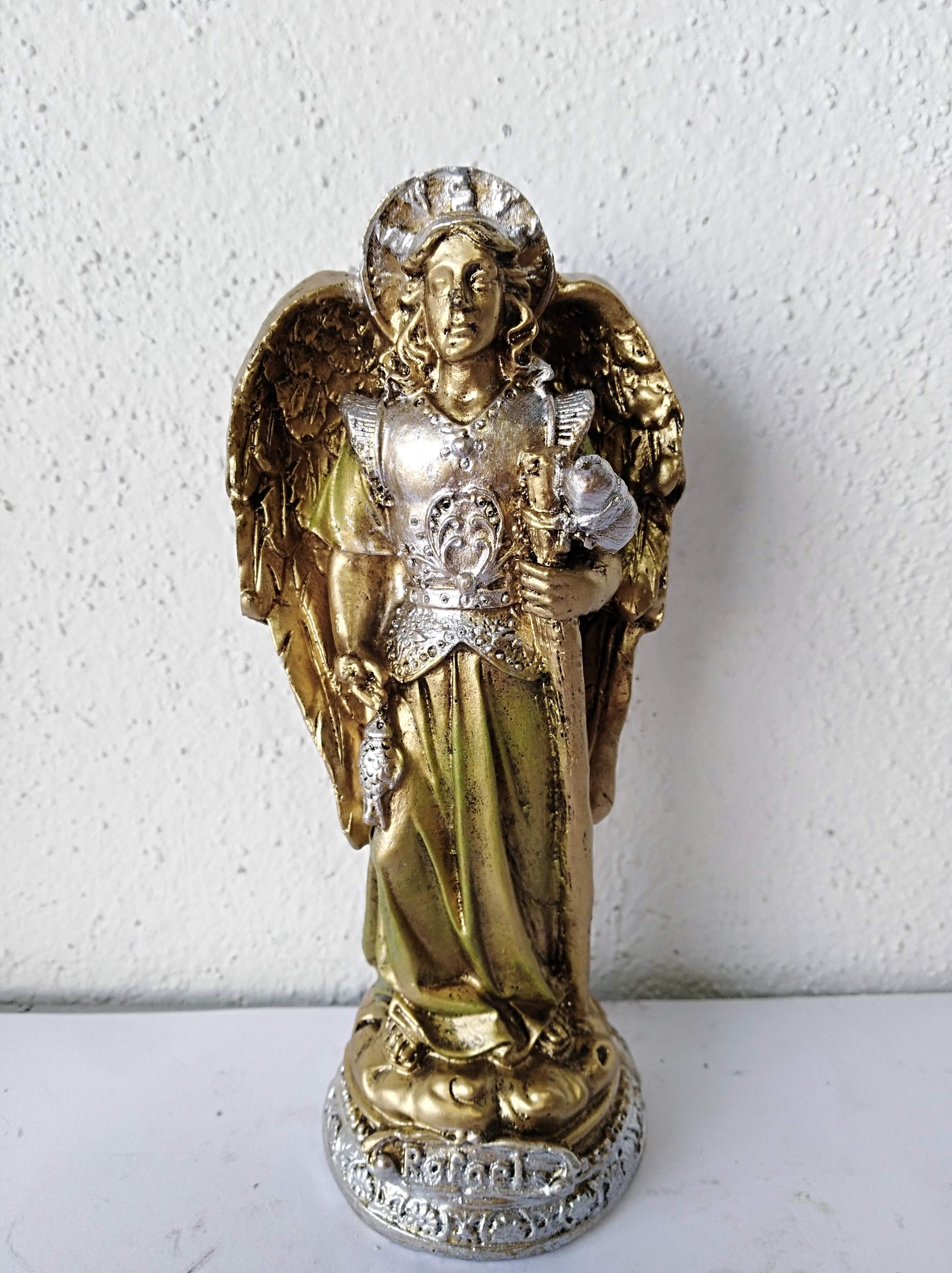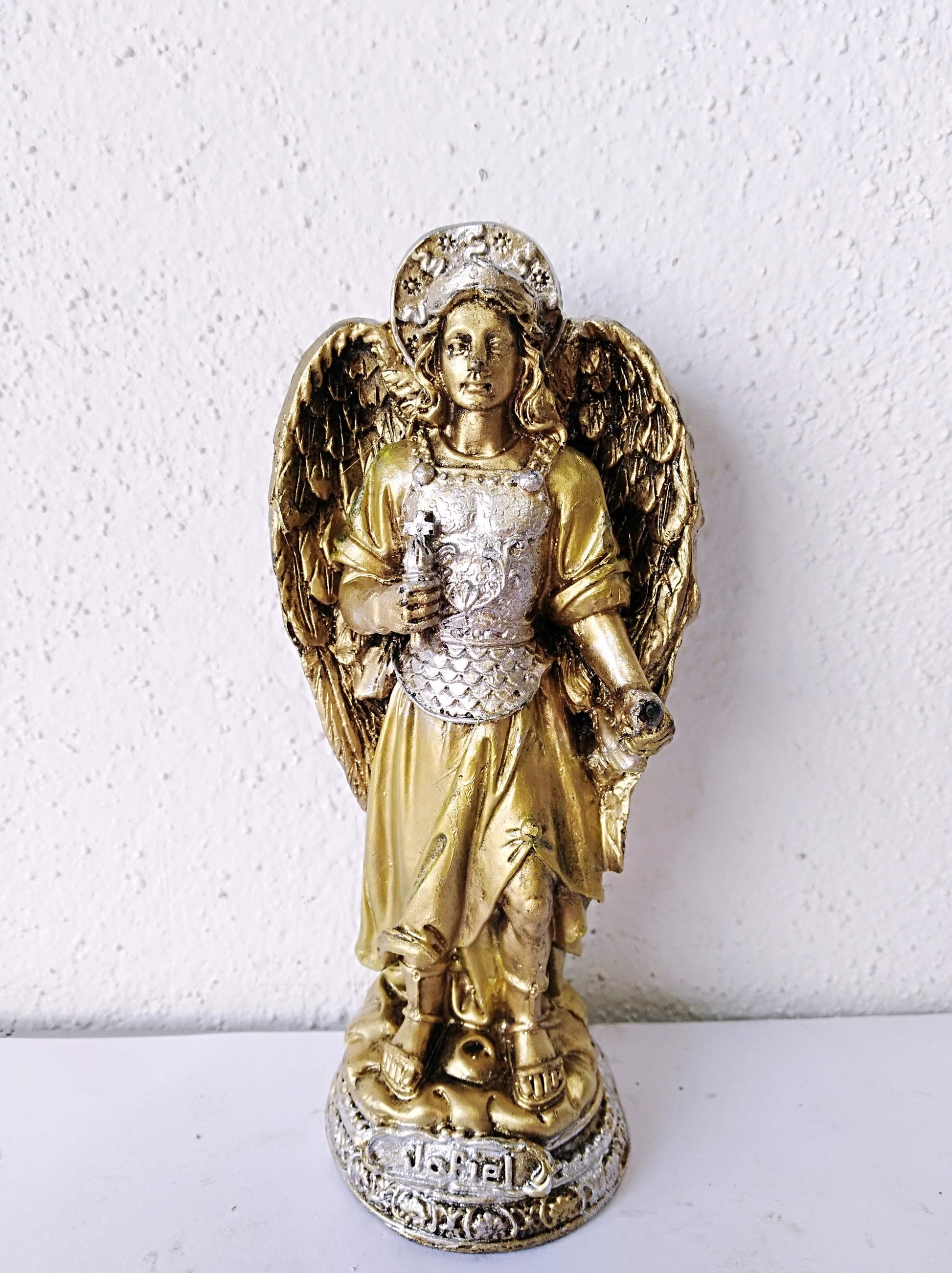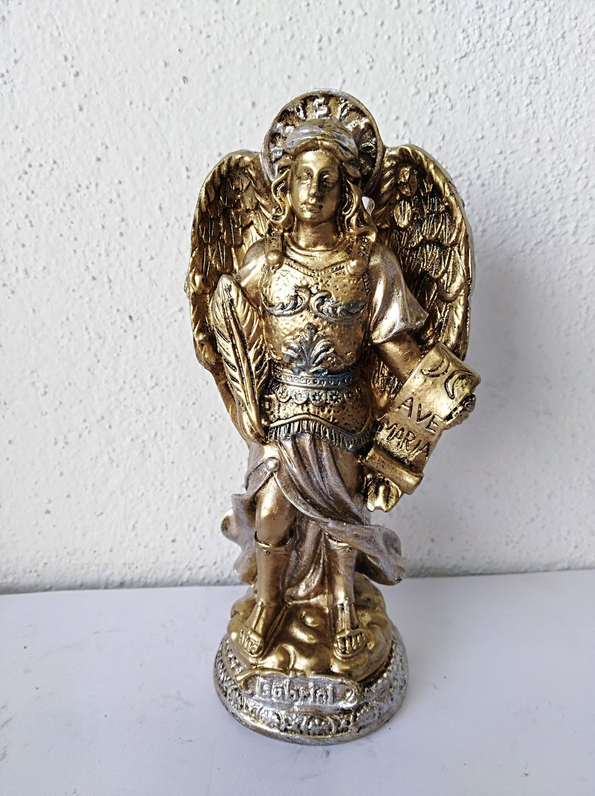 - Paquete completo de 7 arcángeles dorados de 10 cm. Cada uno tiene un don con el que te puede ayudar. (amor, salud, dinero, paz, abundancia, sabiduría, malas energías, y mensajerías) + 1 arcángel Metatrón de alas extendidas qué mide 35 cm.