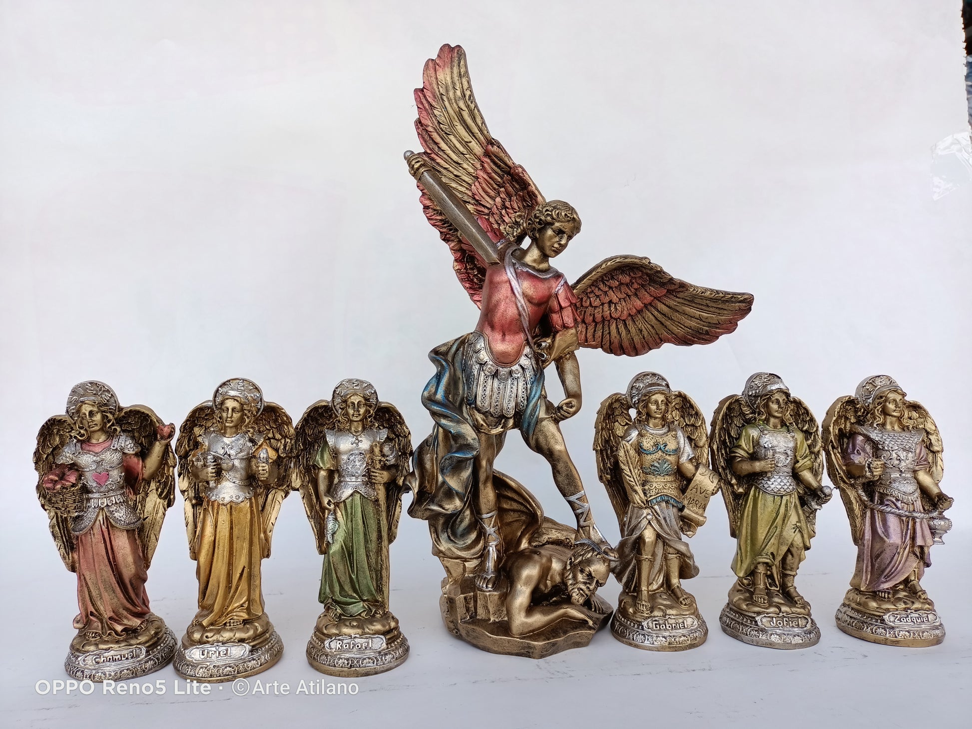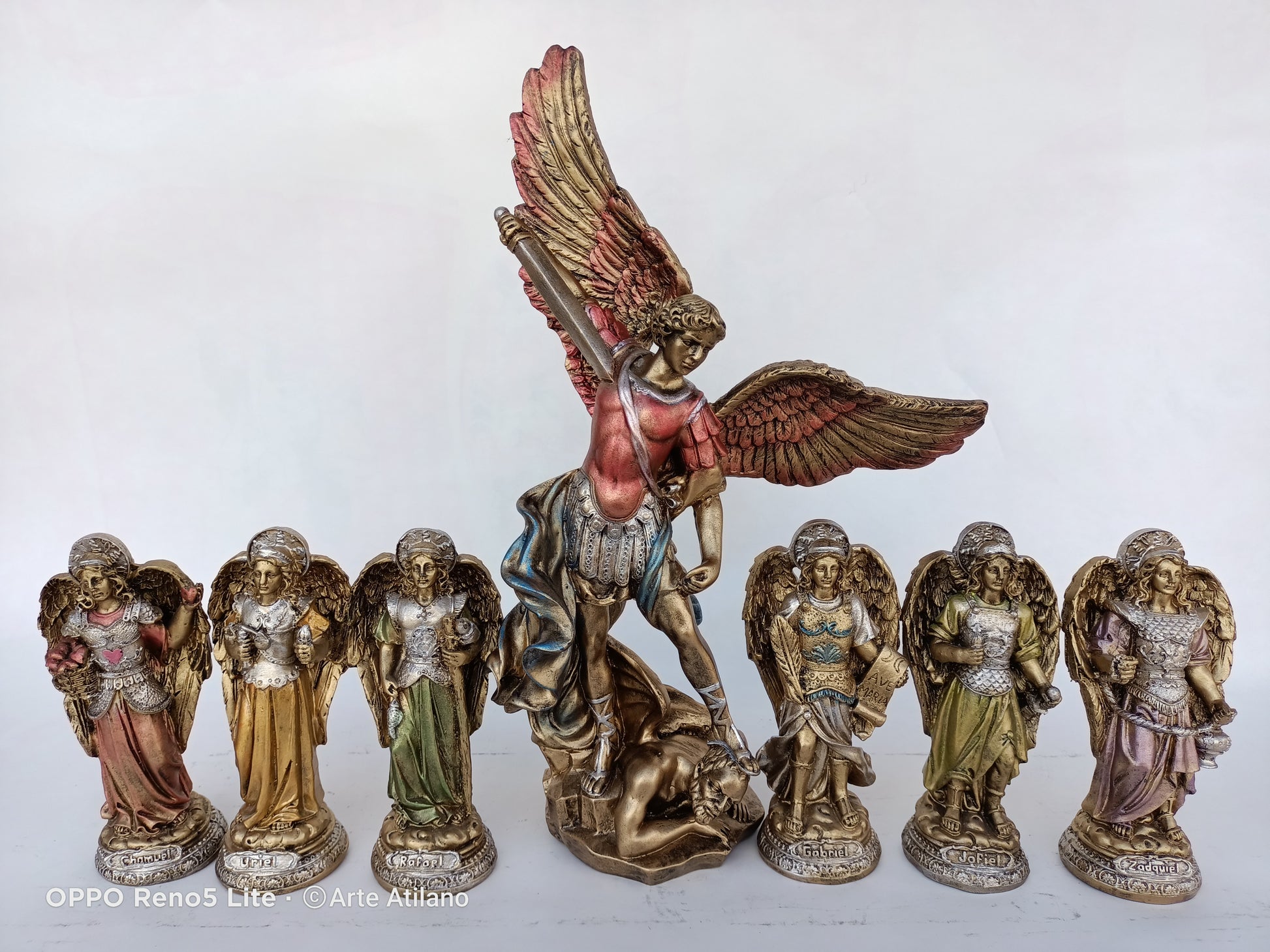 Set de 7 Arcángeles con San Miguel – Figuras de Resina Artesanales