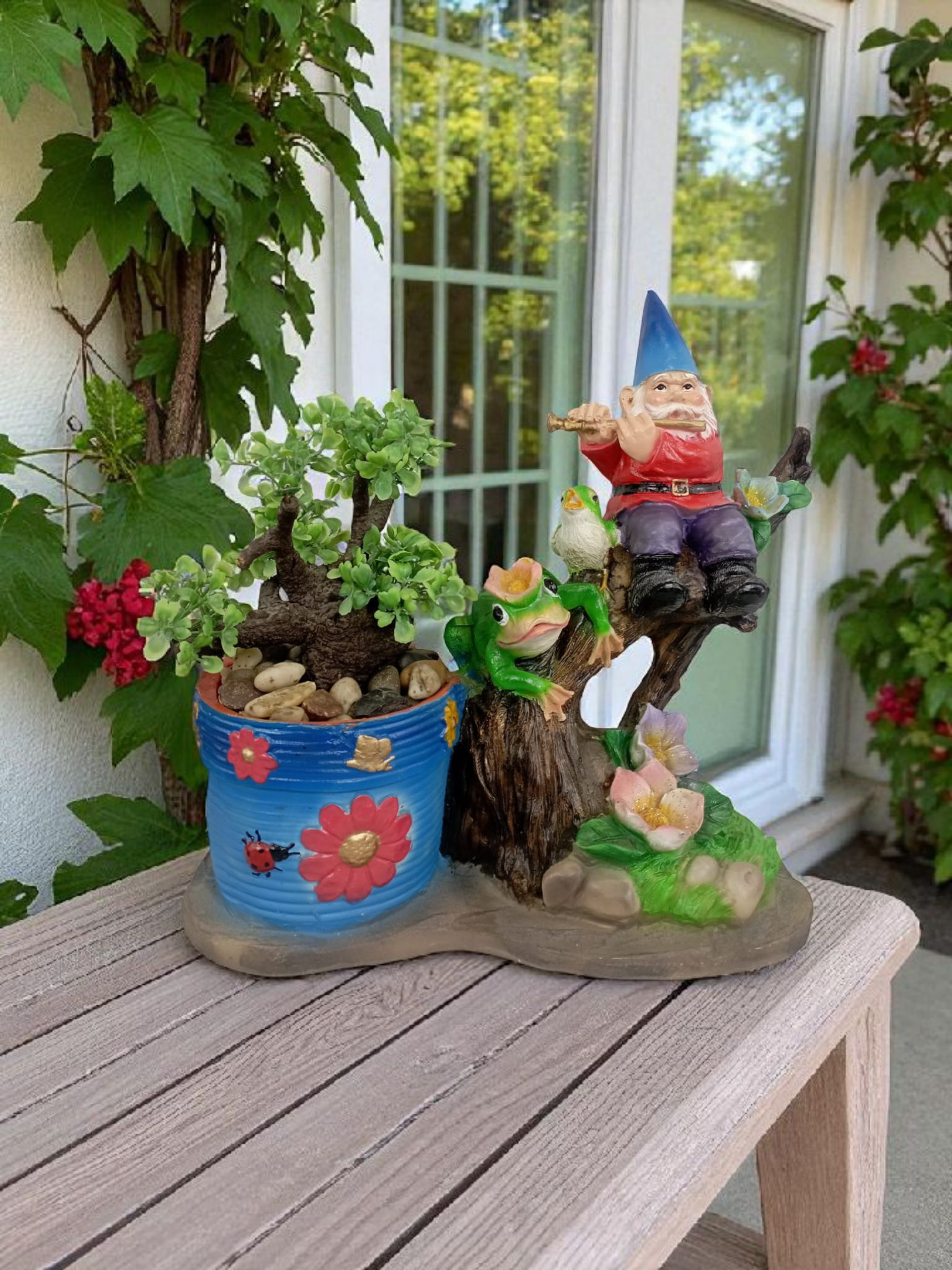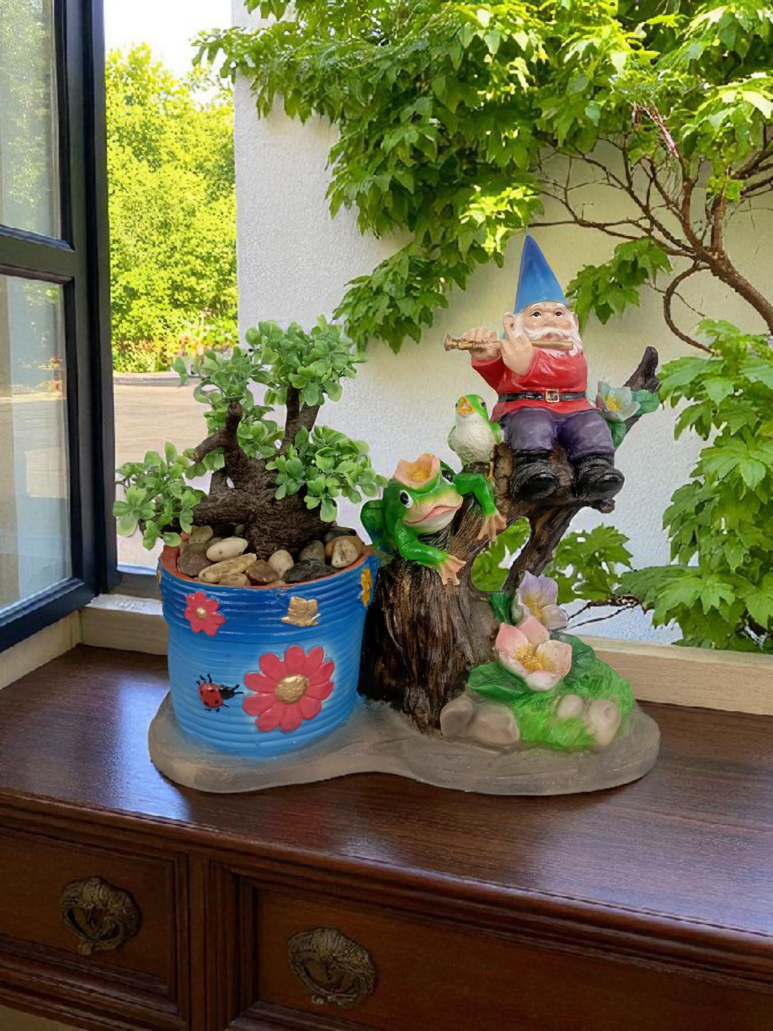 Maceta Decorativa Duende Músico con Animales – Fantasía Natural Artesanal