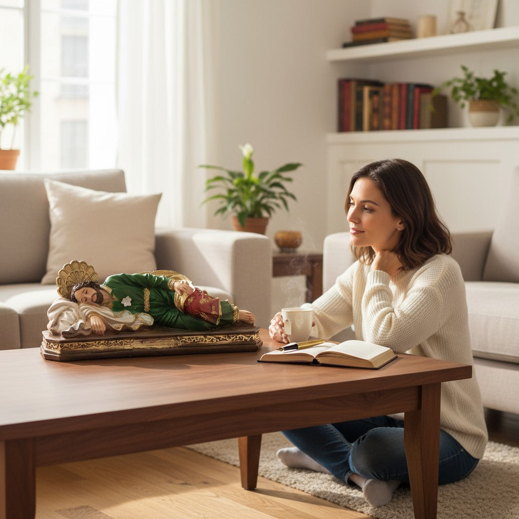 San José Dormido es una imagen poderosa y llena de fe, símbolo de confianza en los planes de Dios y protección para el hogar. Se le conoce por interceder en momentos de preocupación o incertidumbre: muchas personas colocan debajo de él sus peticiones o deseos escritos, confiando en que mientras duerme, Dios le revela cómo ayudarlas.