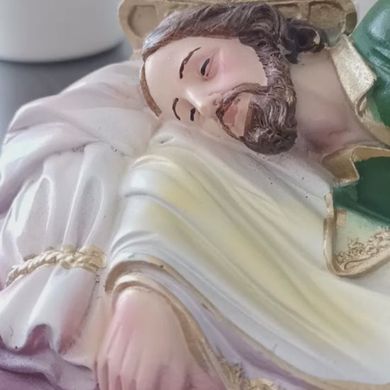 San José dormido durmiente descansando, San José Dormido de Resina 25 cm – Imagen Religiosa para Protección y Peticiones en el Hogar