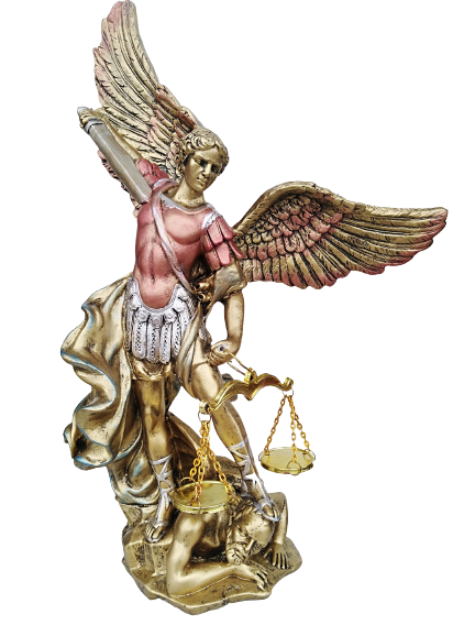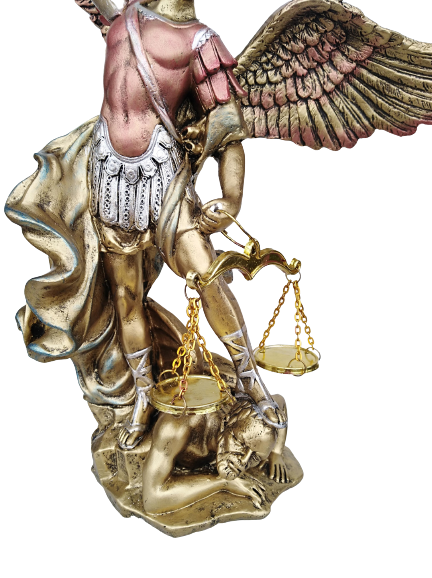 San Miguel Arcángel con Balanza Metálico 35cm Figura Escultura